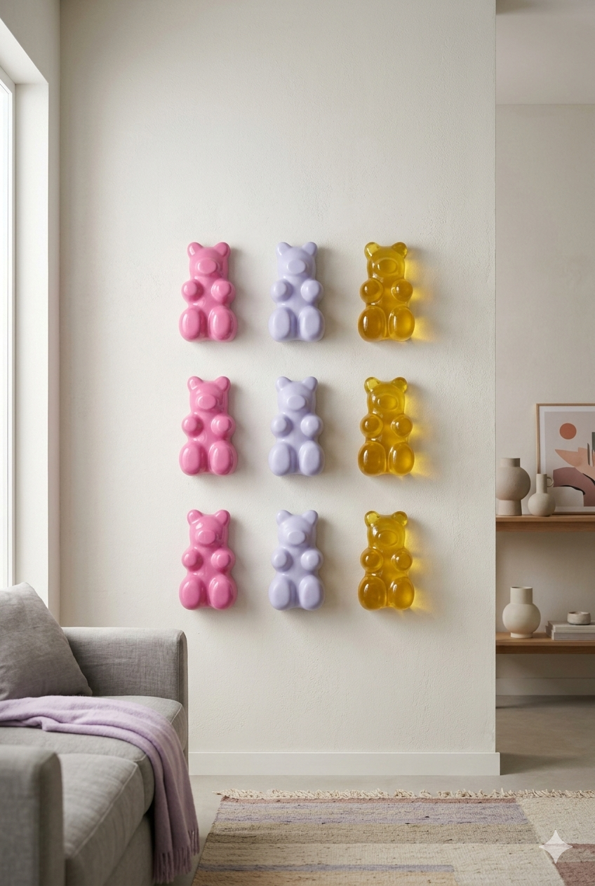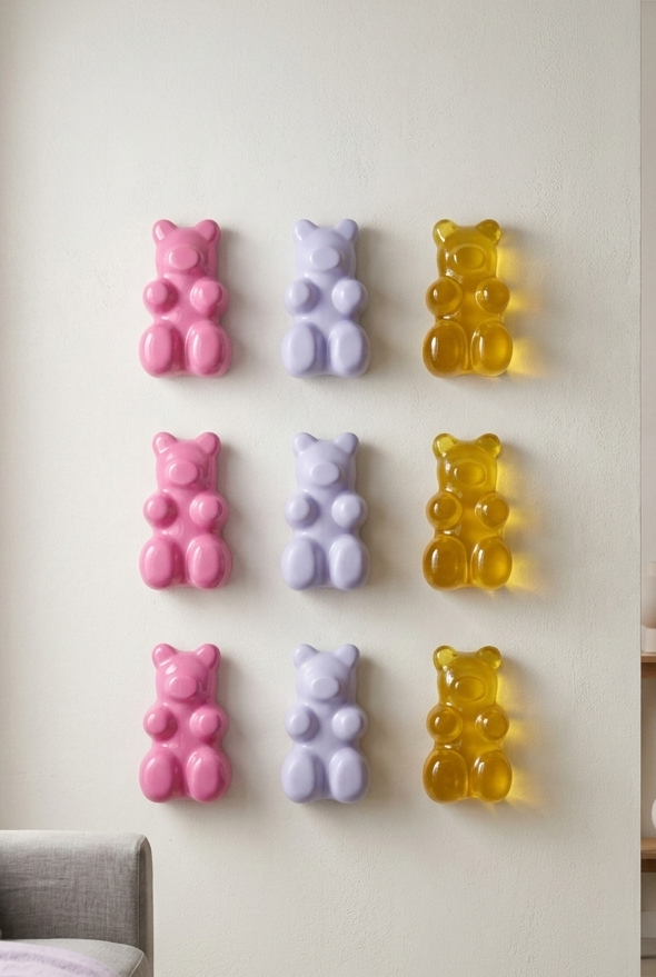 9 Esculturas de Panditas de resina para muro de colores